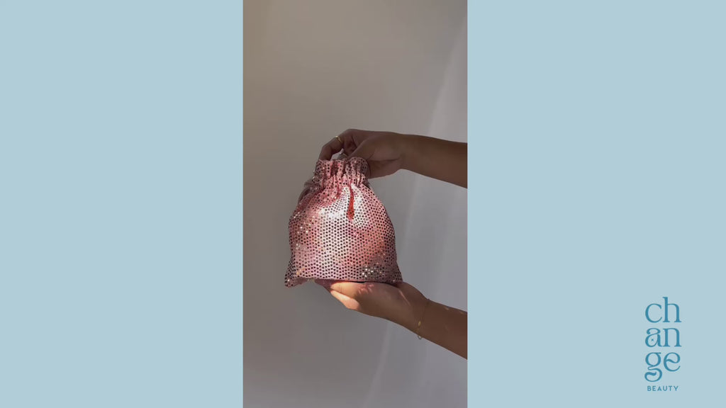 What it is: The Mission Mistletoe Kit comes with 3 Sweet Talk Lipglosses in our best-selling shades that compliment every skin tone–Pucker Up Peach, Cinnamon Hearts and Hot Gossip! Packed with Vitamin E to help keep those lips soft and moisturized all winter long, the Mission Mistletoe Kit is the perfect accessory for every mistletoe meeting! The kit comes with a pink Preloved x Change Beauty sparkle holiday bag crafted from deadstock fabric remnants, happy gifting– one for you, one for the bestie!